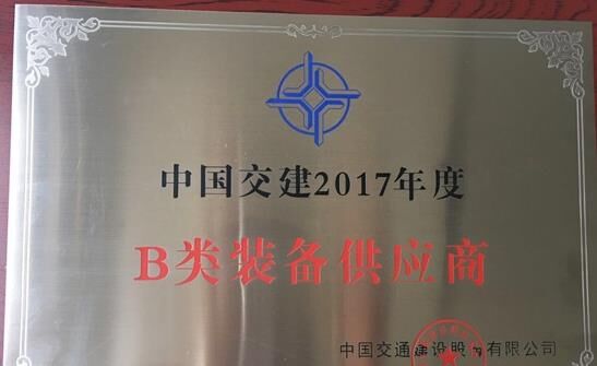 圆友重工荣获“中国交建2017年度B类装备供应商”