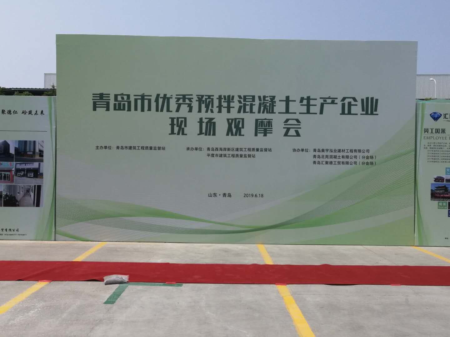 2019年6月18日,以“吹响智慧管理冲锋号,决胜扬尘防治攻坚战”为主题的青岛市优秀预拌混凝土生产企业现场观摩会,在西海岸新区奥宇泓业混凝土公司、汇聚德混凝土公司以及平度市北苑公司召开。本次观摩会由市住房城乡建设局主办、西海岸新区住房城乡建设局承办,各区市预拌混凝土行业、建设、监理、施工单位共计的600余人参加了观摩会。