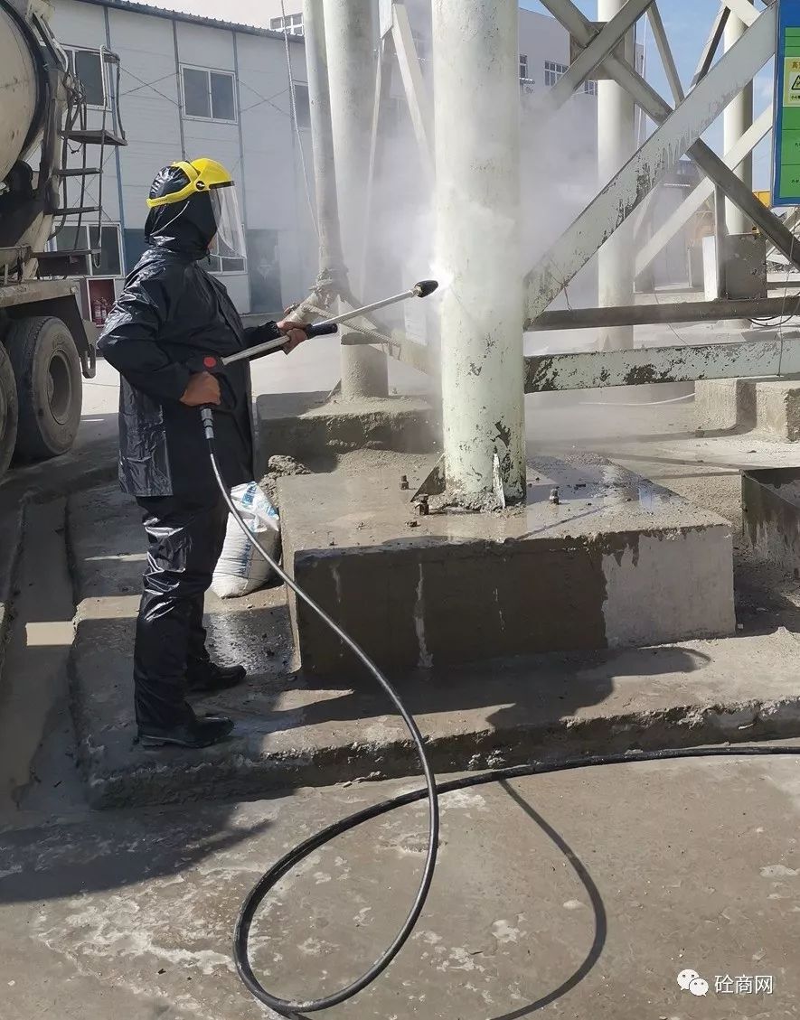 在杨技术员给站上工作人员进行初步讲解指导后,首先对两年没有清理过的水泥仓支腿下方累积的混凝土进行了处理。那么,效果究竟怎么样呢?具体视频关注“砼商网”公众号,回复“高压清洗机”即可获得技术员正准备打搅拌机主楼容易喷溅混凝土的地方时该搅拌站站长说道,这可得有两年没清理过的混凝土结块,十几公分厚呀!你们这高压清洗机能打掉吗?这是混凝土啊!这么长时间了,还这么厚,打不下去怎么办?正在小编心里打鼓的时候,杨技术员说道,没问题,放心吧!