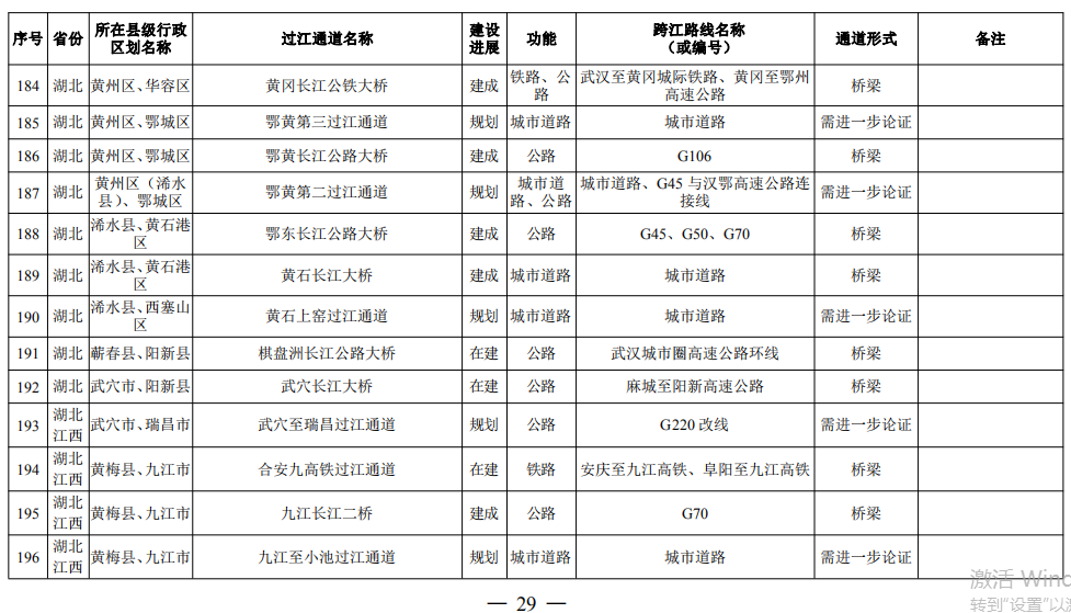 鄂赣界(2座):九江至小池过江通道、九江至黄梅过江通道赣皖界(1座):宿松至彭泽过江通道