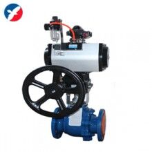 2.Q641F46气动衬氟球阀是全电子式气动执行机构,采有机电一体化结构。Q641F46气动衬氟球阀具有机内伺服操作和开度信号位置反馈、位置指示、手动操作等功能,功能强、性能可靠、连线简单。Q641F46气动衬氟球阀通过输入电流信号或电压信号,改变球芯的旋转角度(0-90º任意角度),实现比例调节动作。