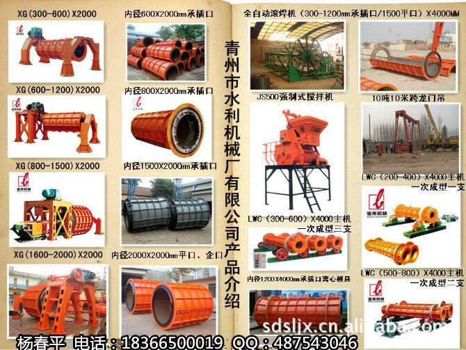 如:规格在长度2米,内径在300--1000MM的悬辊式制管机需2.8万元左右,模具投资在6万元左右,再加上其他辅助设备:喂料机,搅拌机,航吊等总投资有20万就可以周转营业。