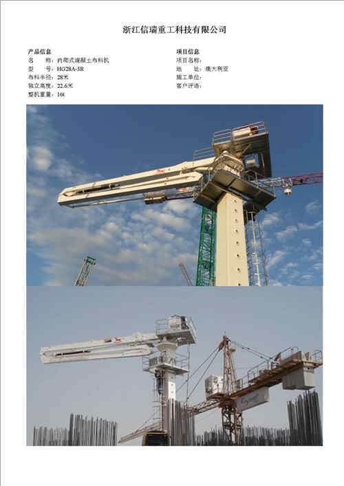 归属行业:信瑞重工HG32A-3R内爬式混凝土布料机