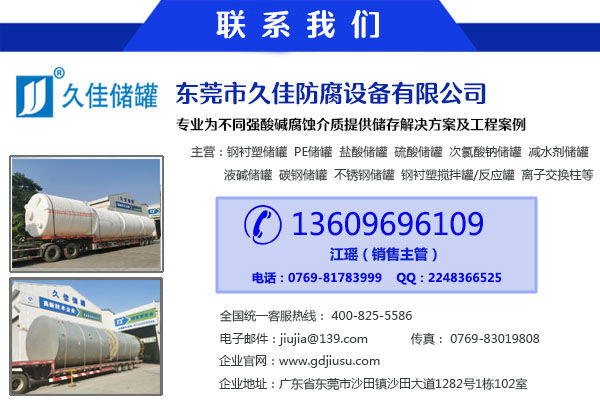 钢衬塑储罐由于其独特的滚塑工艺、产品整体结构和材料优异性能,具有整体性好、强度高、无焊缝、不渗漏、抗冲击、韧性好、重量轻、寿命长、耐酸碱、耐有机溶媒、符合卫生标准、价格低廉、规格品种多等特点。尤其耐腐蚀、长寿命和大规格品种有非常大的优势。是贮存和运输各类化工液体半固体的理想产品。其性能大大超过了传统的玻璃钢、陶瓷、橡胶、焊接塑料等材料制作的防腐储罐。