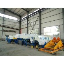该系统主要由:搅拌车加水清洗装置,溜槽输送装置,砂石浆水分离装置,和泥浆水后处理装置组成。混凝土输送设备清洗后,将残余混凝土排入溜槽中,在高压水流冲击下,经溜槽进入砂石分离机,在不断旋转的分离机作用下,对混凝土进行充分的清洗,同时将砂、石进行分离,分离后的砂、石在导料叶片的作用下背向流动,再通过提升式出料口排出分离机,分别堆放。清洗后的浆水从分离机的底部排出进入沉淀池逐级沉淀后循环使用或进入搅拌池回收利用。进入搅拌池(一般情况2个搅拌池)的浆水为了防止沉淀凝固,需通过搅拌器的作用,搅拌器的工作为间歇式。分离出水泥浆在连续的搅拌器作用下,再通过高压污水泵输送到搅拌楼中待生产计量再利用。整个控制系统设有手动和自动控制,方便控制设置,整个系统运行可靠,故障率低,维护量少等特点。