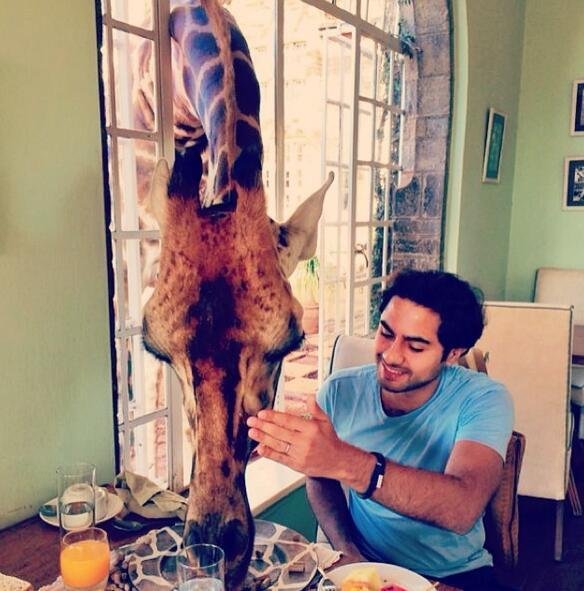 住在这家酒店最大的福利就是,可以和蠢萌蠢萌的长颈鹿作盆友。