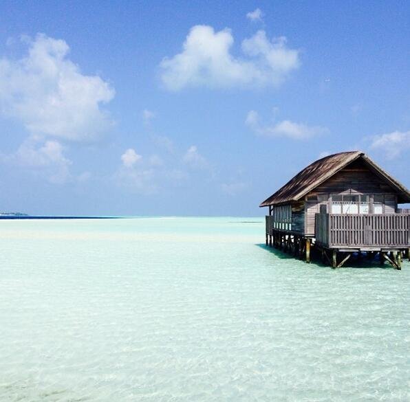 马尔代夫的可可亚“水上套房度假”岛。一排排精灵住所般的房子凌空建在水上。